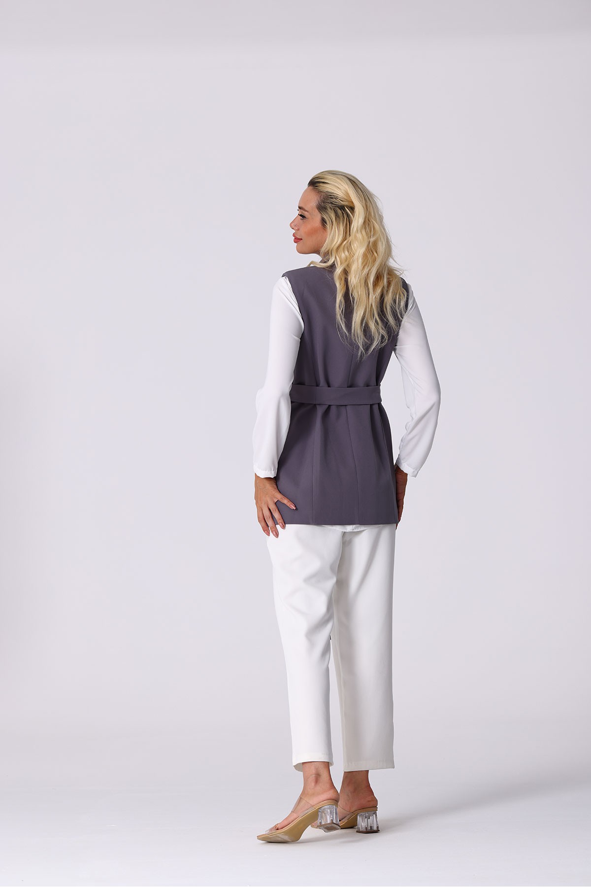 Kadın Tokalı Kuşaklı Yelek beyaz
