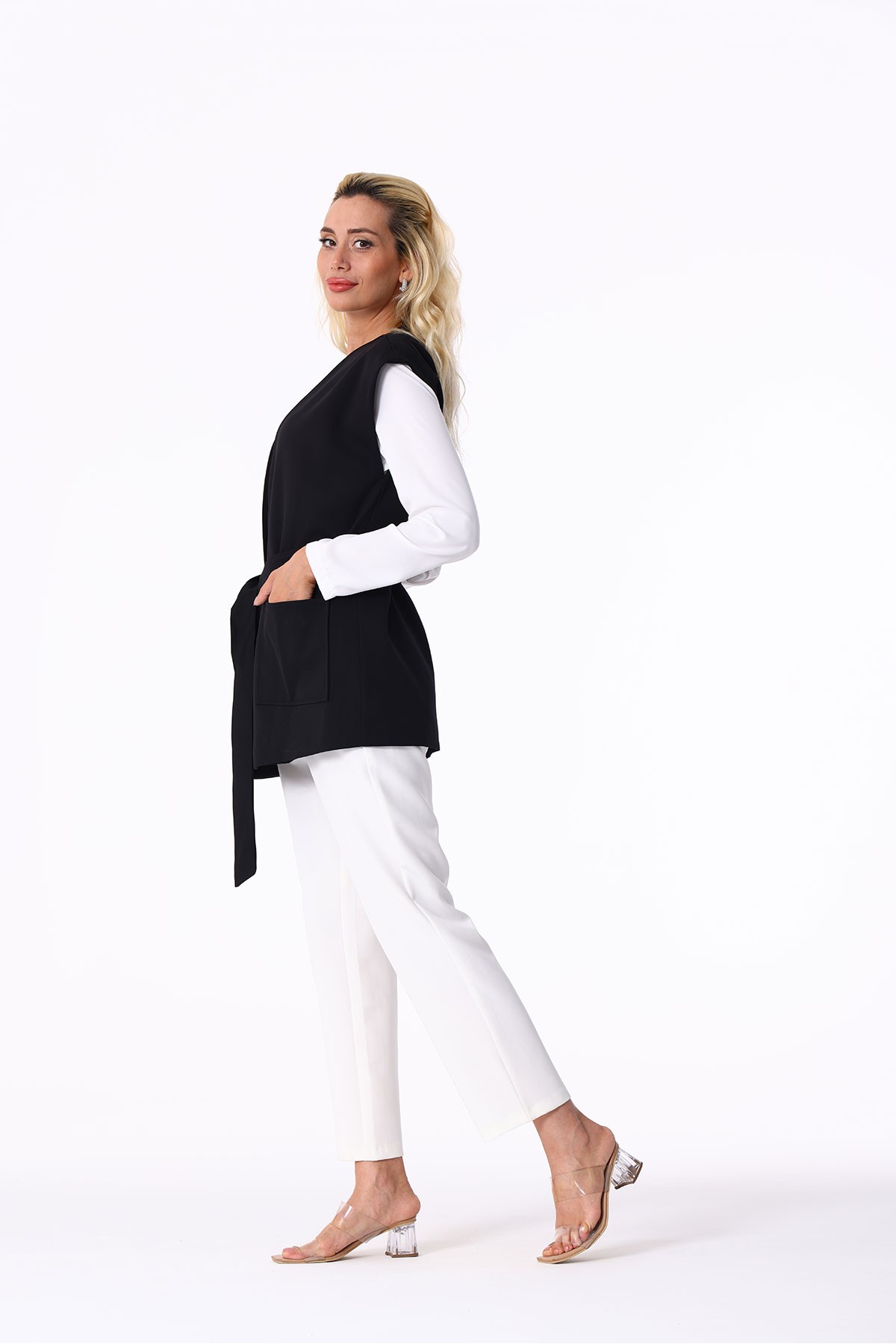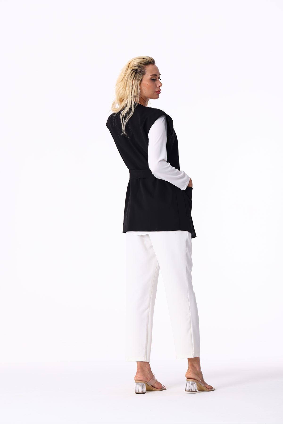 Kadın Tokalı Kuşaklı Yelek beyaz