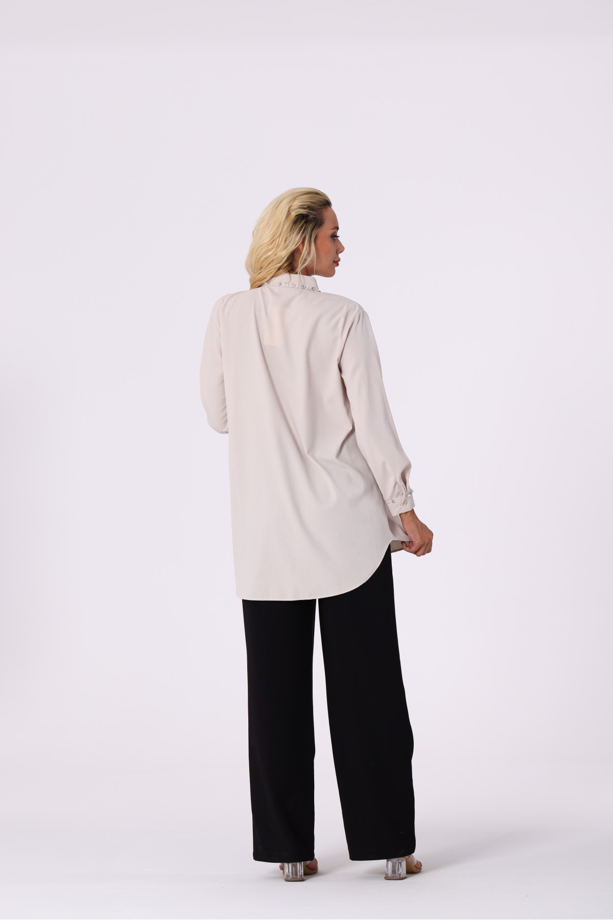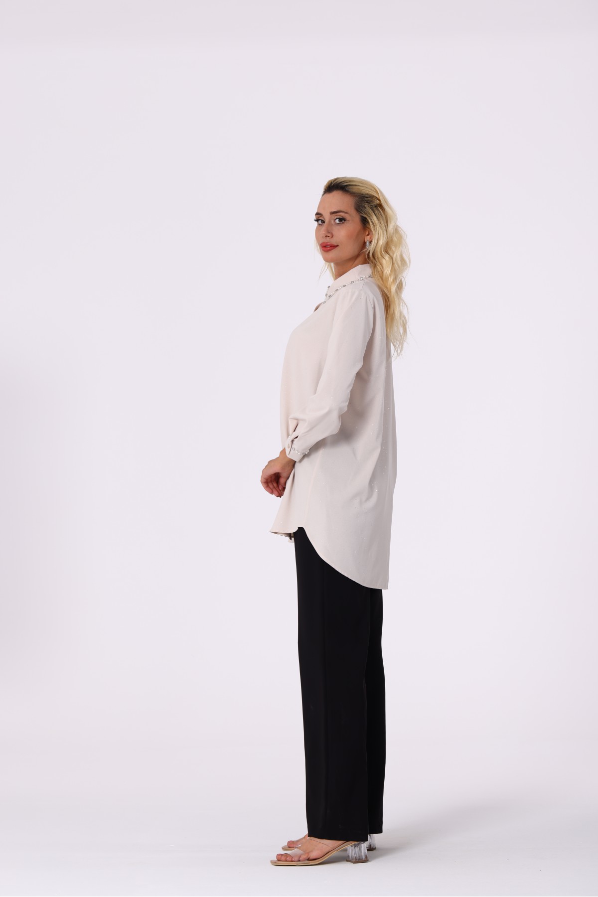 Düz Uzun Kollu Kadın Gömlek Tunik bej