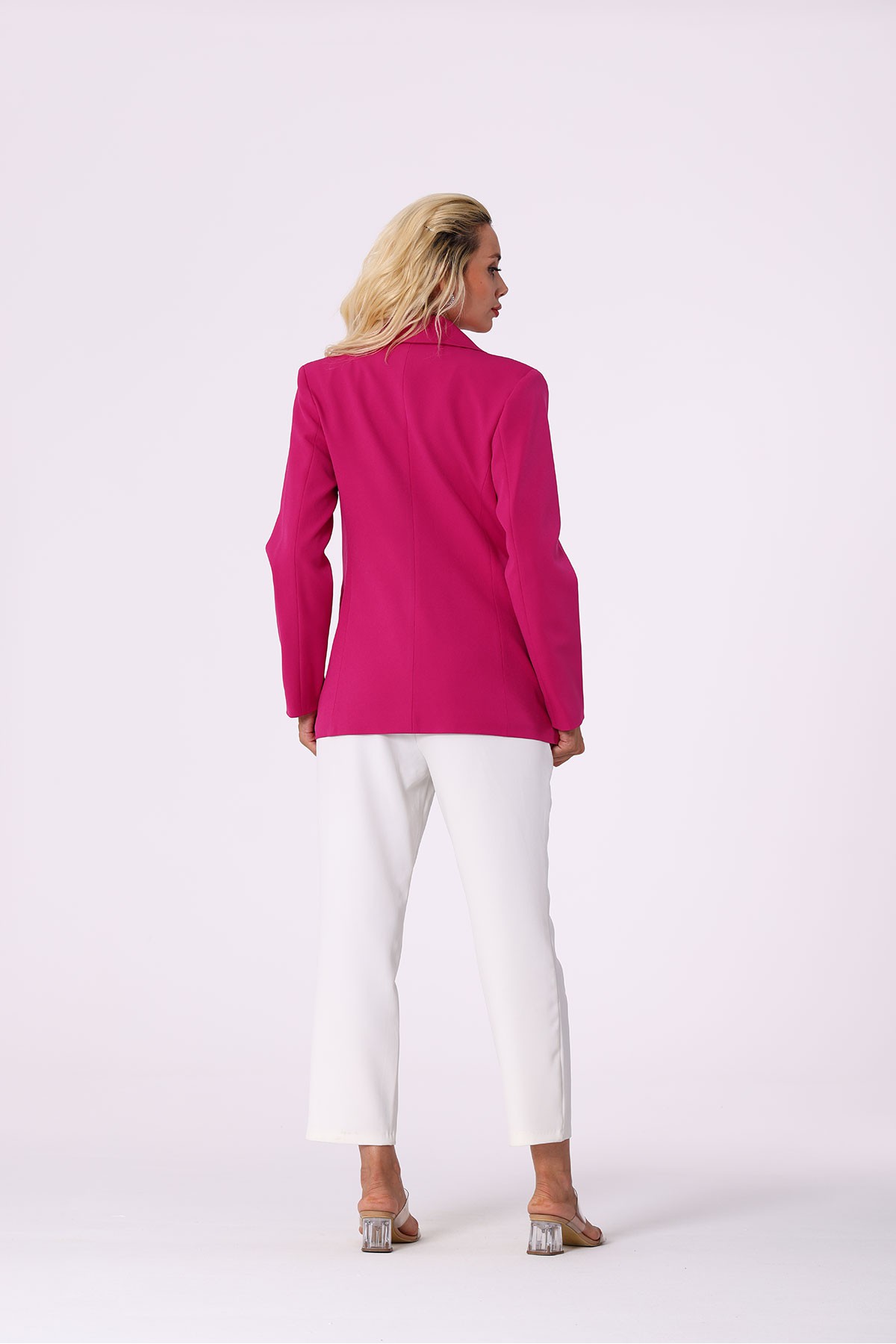Önden Düğme Kapamalı Düz Uzun Kollu Kadın Ceket pembe
