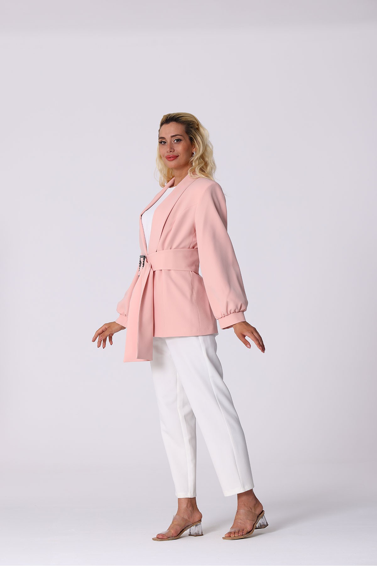 Kadın Büyük Tokalı Taşlı Kimono Ceket pembe