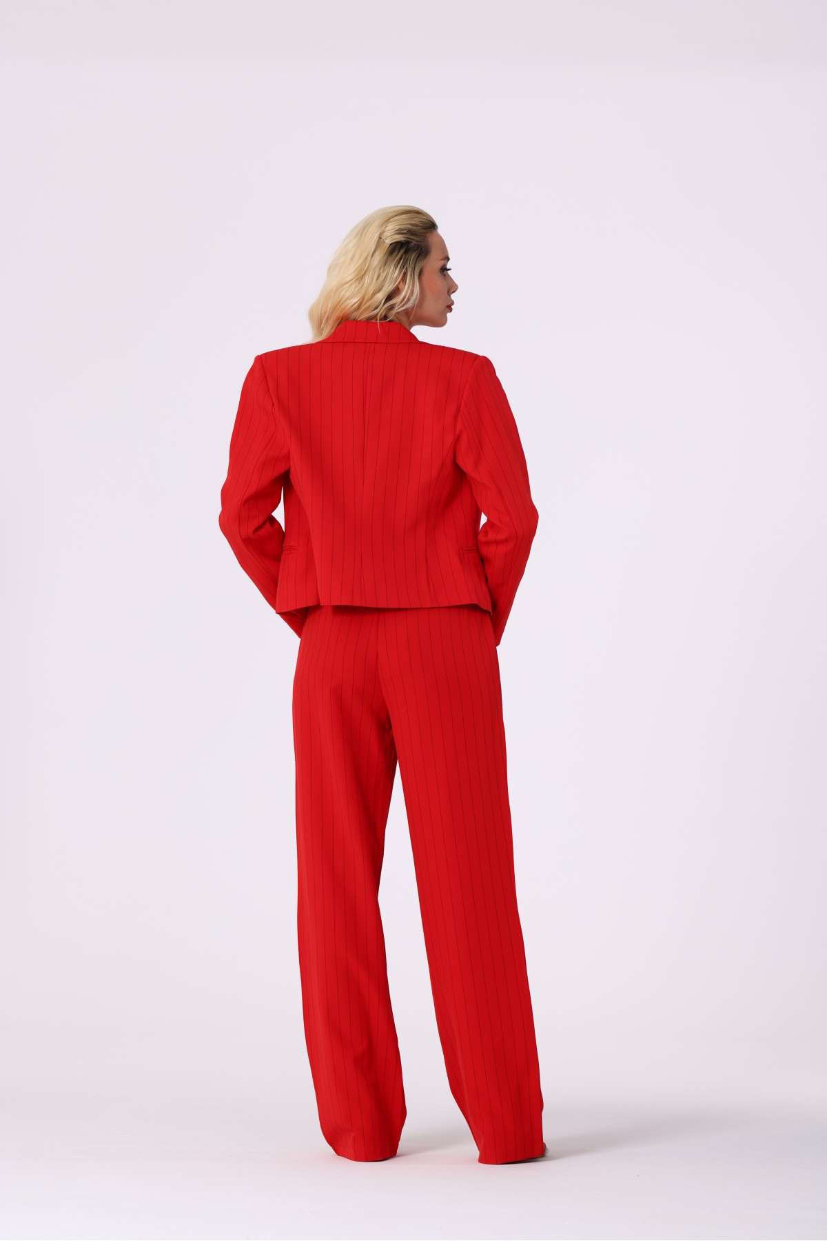 Kruvaze Çizgili Crop Blazer Ceket kırmızı