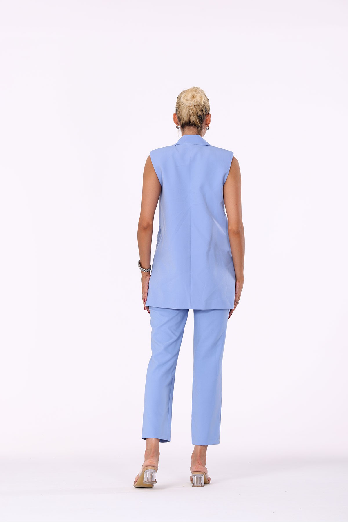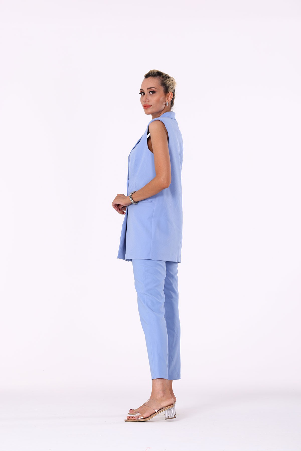 Tokalı Kuşaklı Yelek Pantolon İkili Takım mint