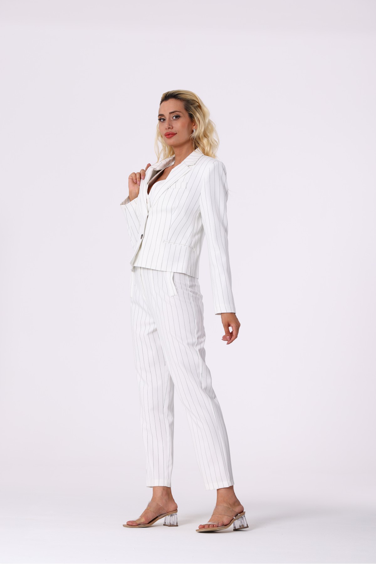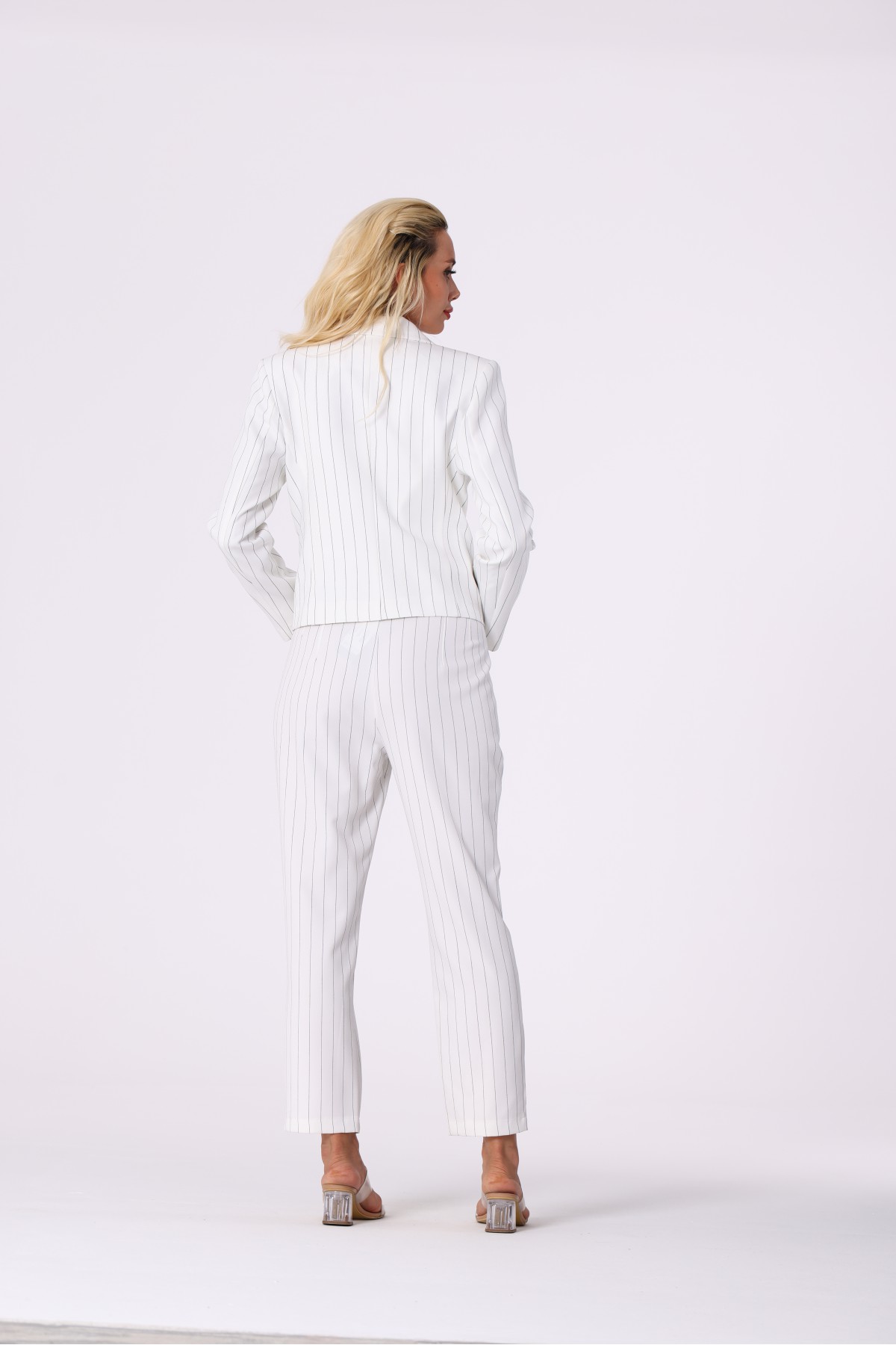 Kruvaze Blazer Ceket Düğmeli Kapaklı Cepli beyaz